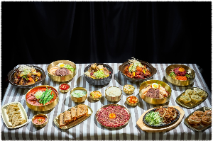 참숯 화로 위에 정성껏 구운 고기와 반찬이 환상적인 조화. 고기 본연의 맛을 즐기고 싶은 날 강력 추천!