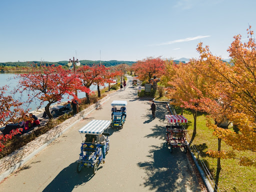 경포호수 둘레길은 총길이 약 4.3km로, 남녀노소 누구나 부담 없이 걸을 수 있는 평탄한 산책로입니다. 강바람을 맞으며 호수를 따라 걷다 보면 다양한 조각 작품과 전망대, 쉼터가 곳곳에 마련되어 있어 산책의 즐거움을 더해줍니다. 특히 봄철에는 길가를 따라 벚꽃이 터널처럼 피어나 멋진 풍경을 만들어내며, 가을에는 단풍과 함께 호수의 고즈넉한 매력을 만끽할 수 있습니다.