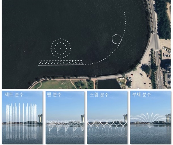 경포호수광장은 가족 단위 방문객들에게 인기 있는 공간입니다. 넓은 광장에는 잔디밭과 산책로가 마련되어 있어 피크닉이나 가벼운 산책을 즐기기에 좋습니다.위 사진은 경포호의 분수대 설치 계획 조감도로 자연경관과 철새 서식을 방해할 수 있다는 논쟁 중이다.(관련기사보)